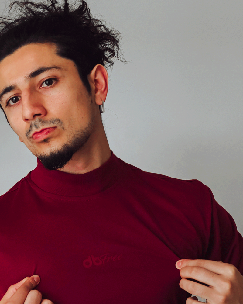 Es una polera unisex de corte relajado con un tinte formal, construida desde cero por dbFree, desde la elección de la tela, la forma, confección de la prenda, y el estampado.