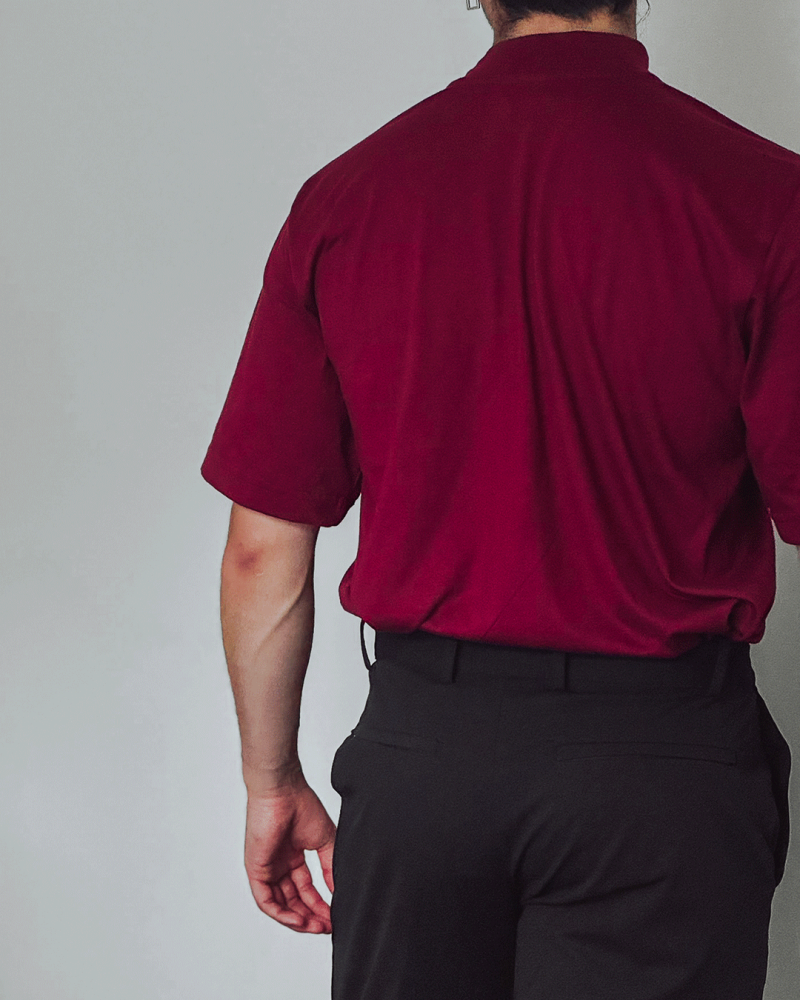Buscamos encontrar un balance entre lo moderno con el estilo clásico formal, con hombros ligeramente caídos y mangas amplias, utilizando la polera tanto dentro del pantalón como afuera, se ve un estilo limpio y clásico, excelente tanto como para ir a un encuentro normal del día a día hasta una reunión más formal.